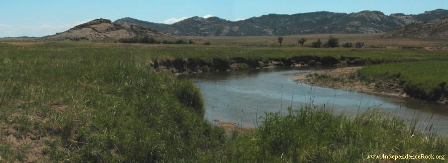 Here near Independence Rock the trail made the first of nine crossings of the