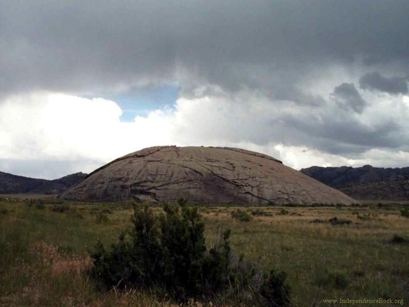 trail, Indpendence Rock is a solid piece of granite protruding from the desert floor.