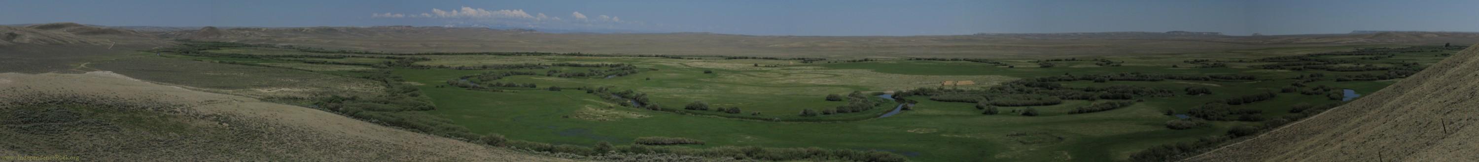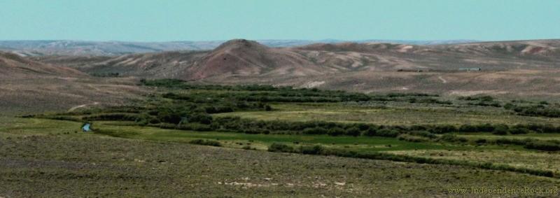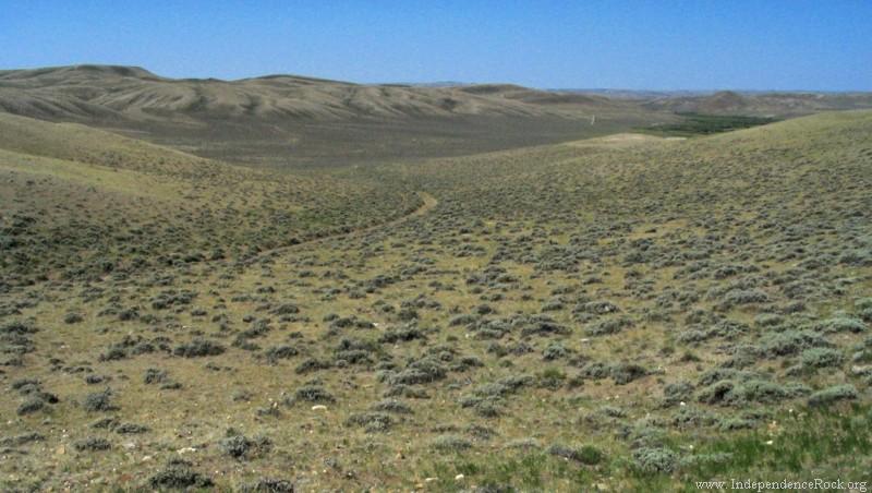 The trail descends from the bluffs south of Sweetwater Station to cross the river a