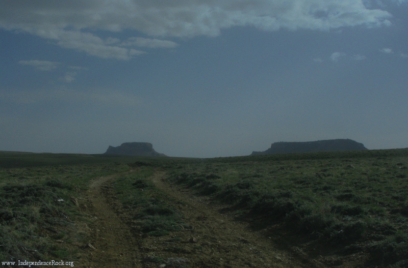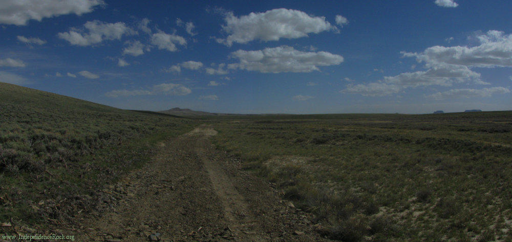 Now trending decidedly west, the trail makes for the Oregon Buttes, eventually passing to their north (right).