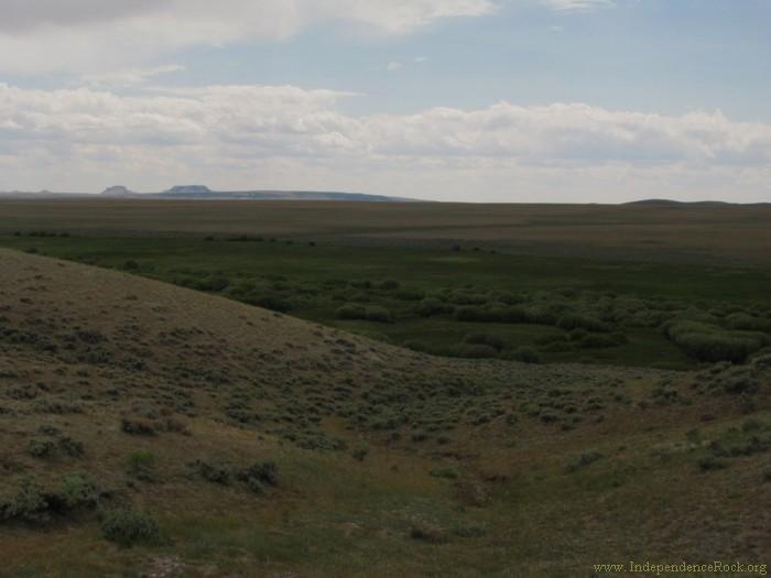 A few miles to the west of the Rock Creek site, trail ruts descend to cross Willow Creek. The Oregon Buttes, visible here on the horizon, announce the approach of South Pass.